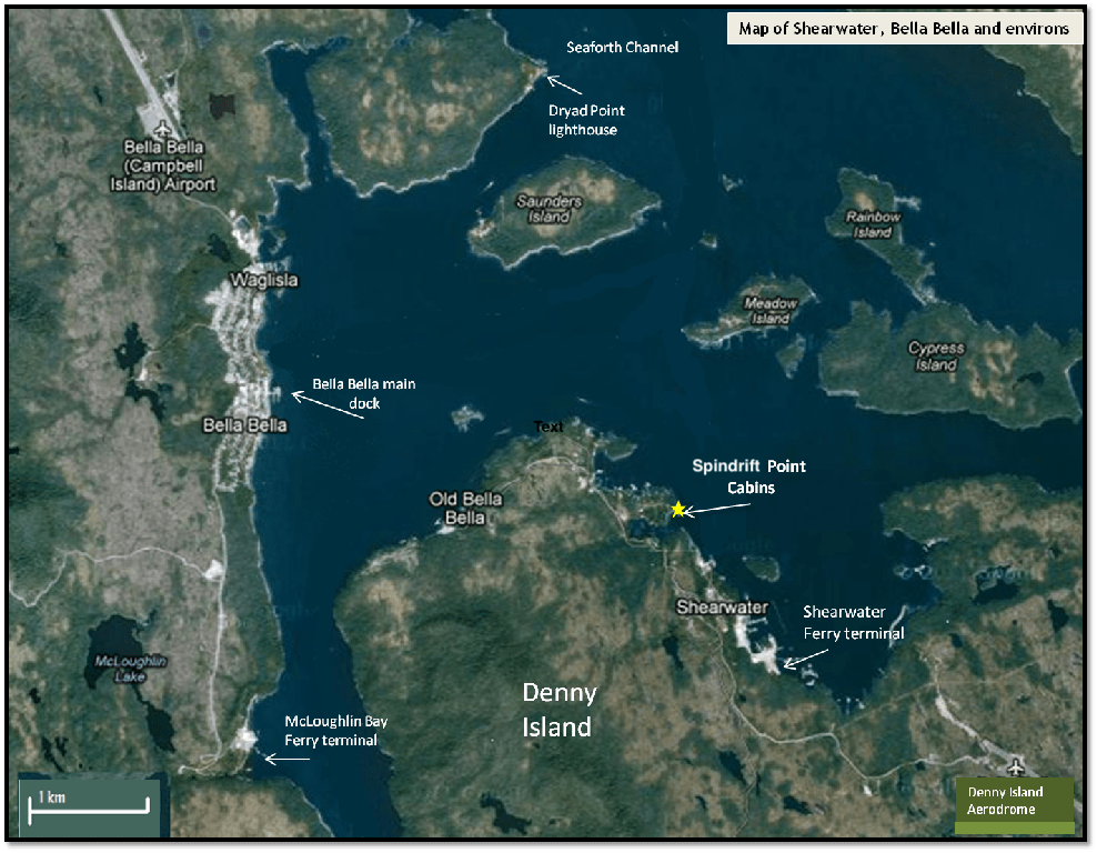 - Seabus: Shearwater Marine runs a regular seabus between the government dock at Bella Bella and Shearwater Marina. See http://shearwater.ca/site/local-services/seabus-service.html or call 250 957 2305 for schedules.